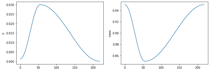 Learner将自动调度mom和lr,因此fit_one_cycle甚至可以与我们自定义的Optimizer一起使用: